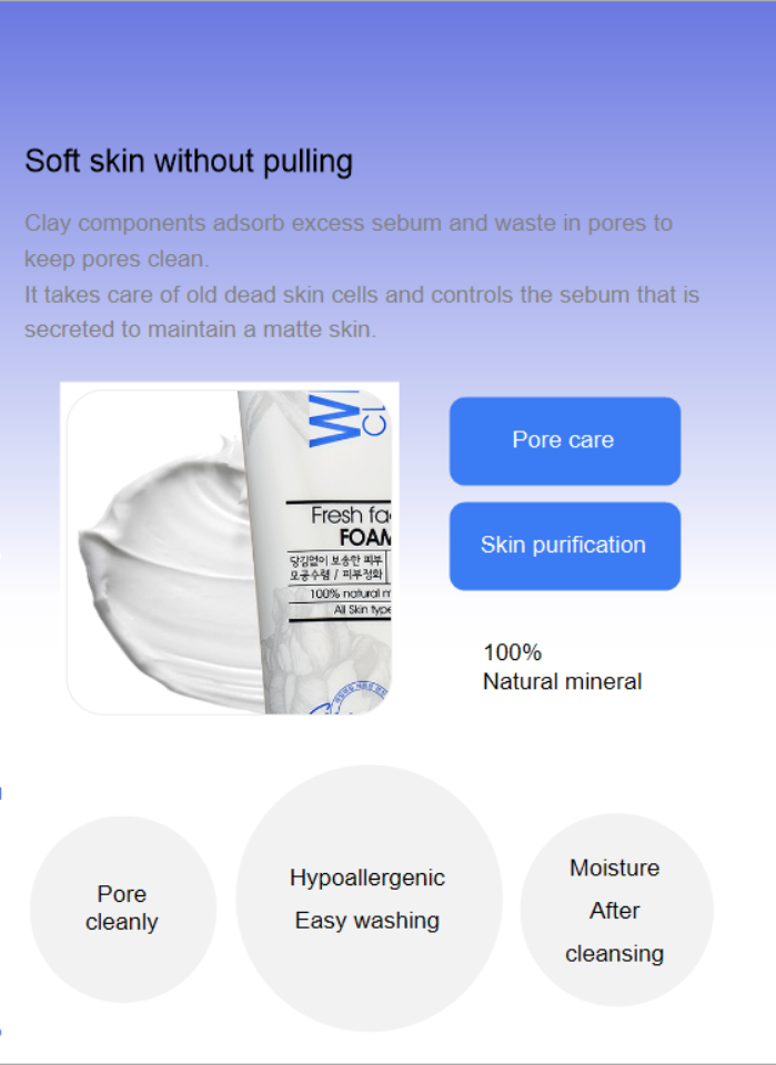 အဖြူရောင်ရွံ့စေးမှ ထုတ်လုပ်ထားရတာကြောင့် မလိုအပ်တဲ့ အဆီနှင့် အညစ်အကြေးများကို စုပ်ယူဖယ်ရှားပေးပြီး ချွေးပေါက်များကို သန့်စင်စေပါသည်။ အဆီထွက်ခြင်းကို သိသိသာသာ ထိန်းပေးပြီး အစိုဓာတ်ကို ထိန်းညှိပေးပါသည်။